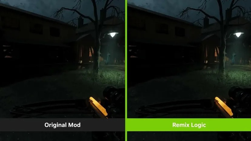 فناوری RTX Remix Logic امکان افزودن افکتهایی مانند ذرات پویا، انحراف رنگی و وینیت را نیز فراهم میکند تا در شرایط خطر، فشار یا هیجان به شکل بصری به بازیکن منتقل شود. حتی افکتهای گستردهای مانند باران یا برف بهصورت هوشمند فقط در محیطهای مناسب فعال میشوند.