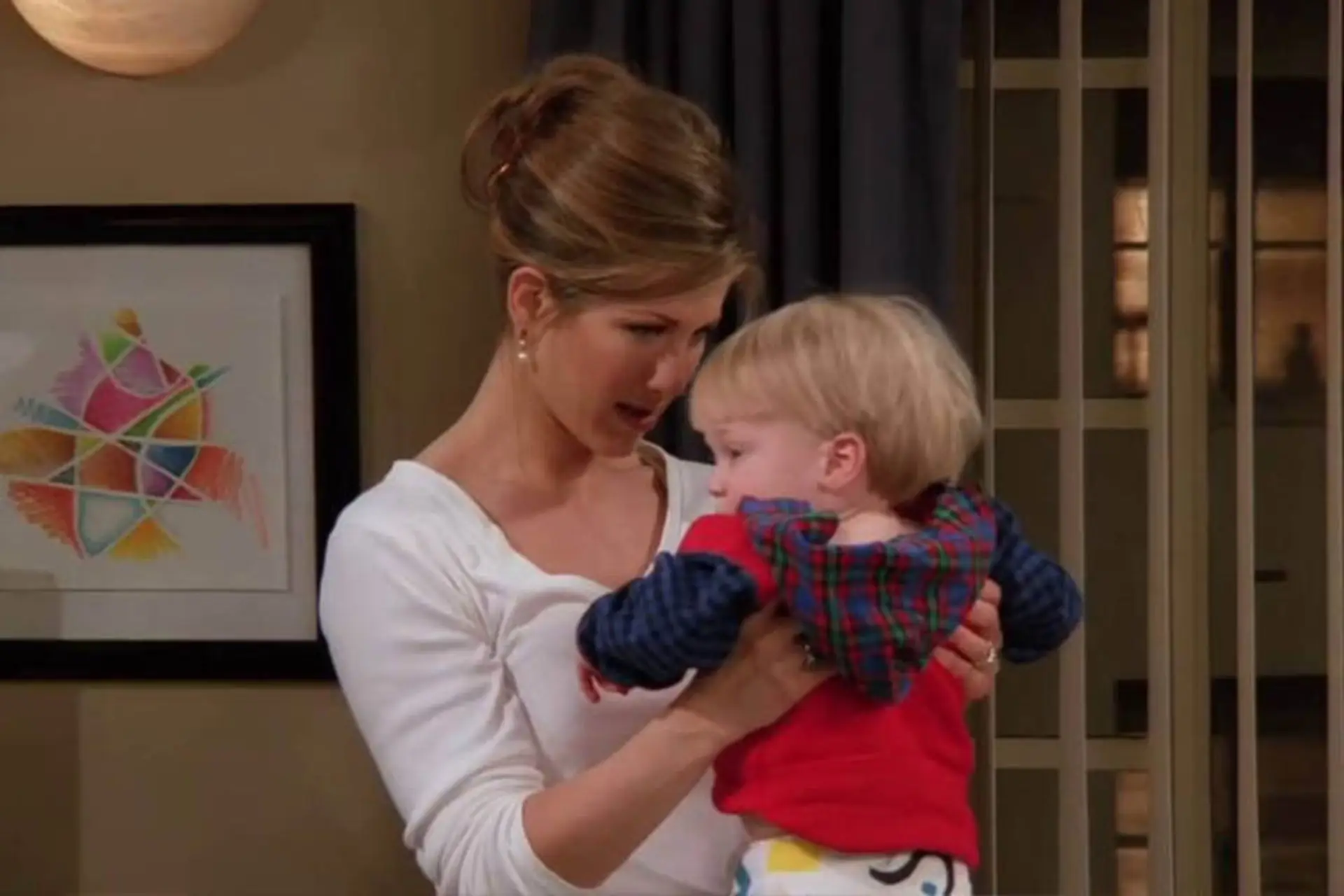 زمانیکه راس پسرش بن را برای یک آخر هفتهی کامل به خانهی خود میآورد، تلاش میکند تا بن اولین کلمهی خود را بگوید و راس شاهد اولین کلمات پسر خود باشد. در سکانس کافی شاپ زمانیکه راس به بن میگوید: «بگو بابا، بابا، میتونی بگی بابا؟»، بن نباید حرفی بزند ولی پسربچهای که نقش بن را بازی میکرد، دائما در تایید حرف راس کلمهی «بابا» را تکرار میکرد (این موضوع در فیلمهای پشت صحنهی این سریال موجود است). این سکانس بهقدری طول کشید که آن بچه از فرط خستگی دیگر صحبت نکرد. ایفای نقش بن توسط کول اسپروز انجام میشد؛ او و برادر دوقلوی خود بعد از سریال Friends به محبوبیت زیادی رسیدند و در شبکهی دیزنی مشغول بهکار شدند.