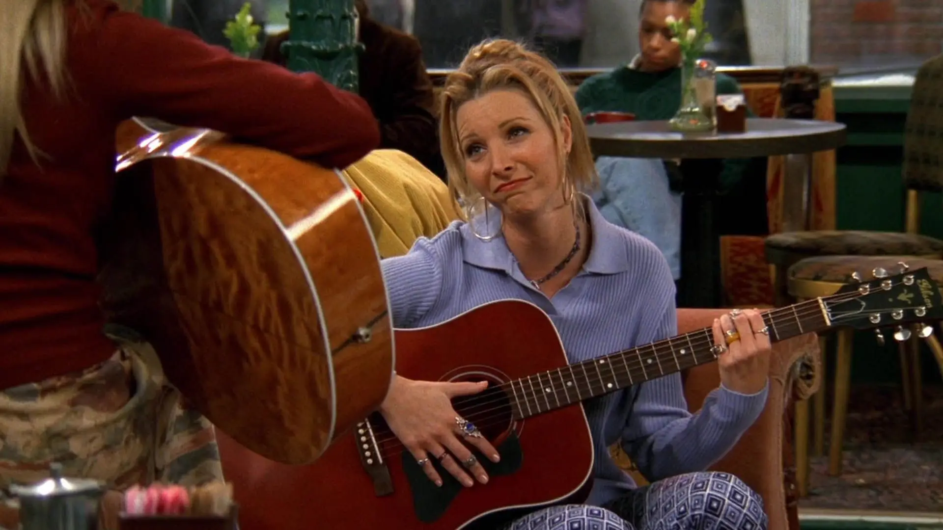 یکی از نمادینترین عناصر سریال فرندز گیتار زدن فیبی بوفی و آهنگهای خاص او است (مخصوصا آهنگ Smelly Cat). لیسا کودرو بازیگر نقش فیبی بوفی در ابتدای مراحل ساخت سریال با خواندن فیلمنامه متوجه شد که شخصیت او باید دفعات زیادی به نواختن گیتار بپردازد؛ مشکل آن جا بود که لیسا کودرو بههیچعنوان بلد نبود گیتار بزند. او نه تنها قادر به گیتار زدن نبود بلکه بهشدت از گیتار بدش میآمد. او حتی به سازندگان سریال پیشنهاد کرد که برای فیبی بوفی ساز دیگری را بهعنوان ساز اصلی او انتخاب کنند که این پیشنهاد از سوی سازندگان رد شد. لیسا کودرو بلاخره موفق شد با حضور یک معلم گیتار چند کورد از کوردهای گیتار را یاد بگیرد. نکتهی جالب این است که شخصیت فیبی بوفی در سریال اصلا خوب و حرفهای گیتار نمیزند، درواقع این لیسا کودرو است که نواختن گیتار را بهدرستی یاد نگرفته است.