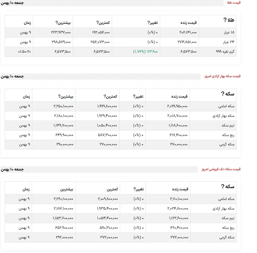 قیمت سکه امروز جمعه دهم بهمن ماه را مشاهده میکنید.
