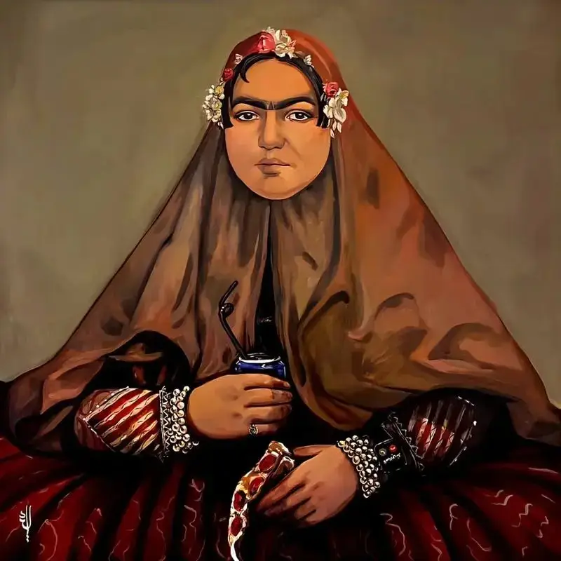پرتره رنگ روغن انیس الدوله، سوگلی ناصرالدین شاه قاجار، اثر کمال الملک (محمد غفاری) در دوره قاجار.