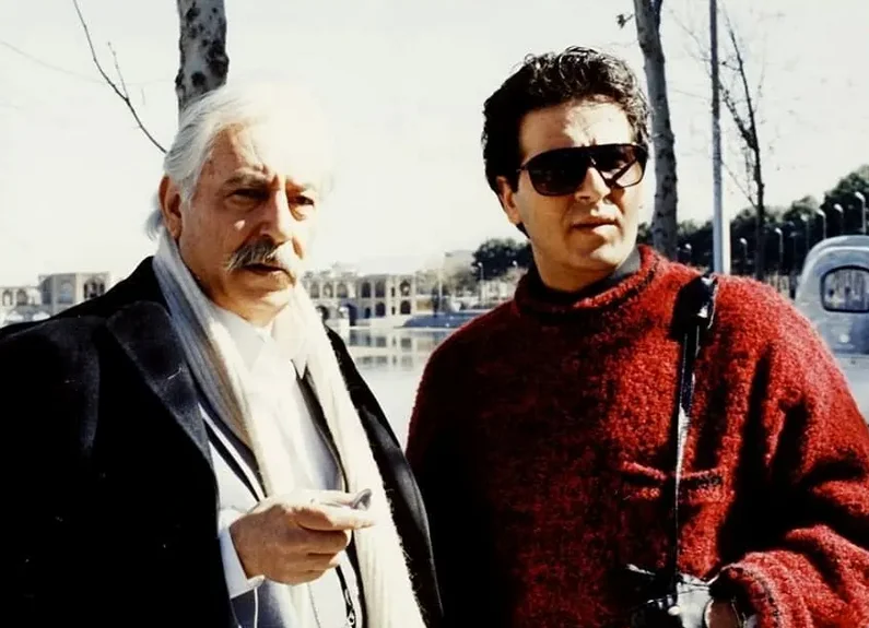 عکسی نادر و جذاب از ابوالفضل پورعرب در 33 سالگی در کنار استاد جمشید مشایخی در فیلم بی قرار، سفری به سال 73 را برای شما رقم میزند.