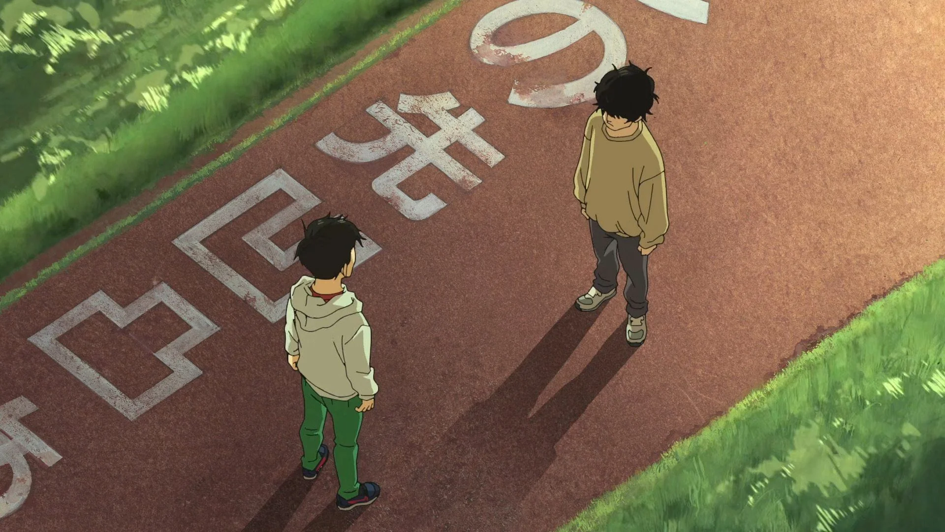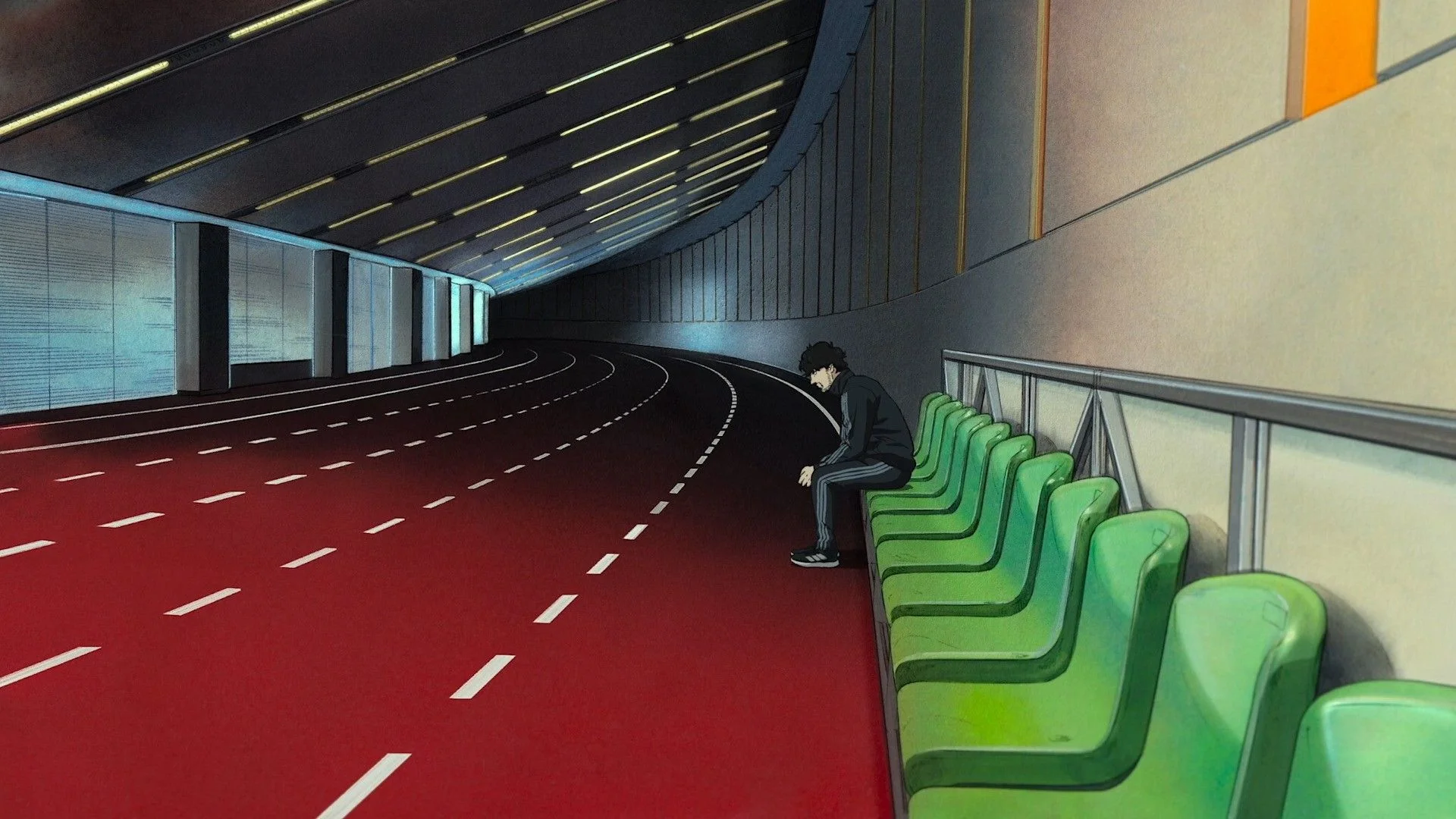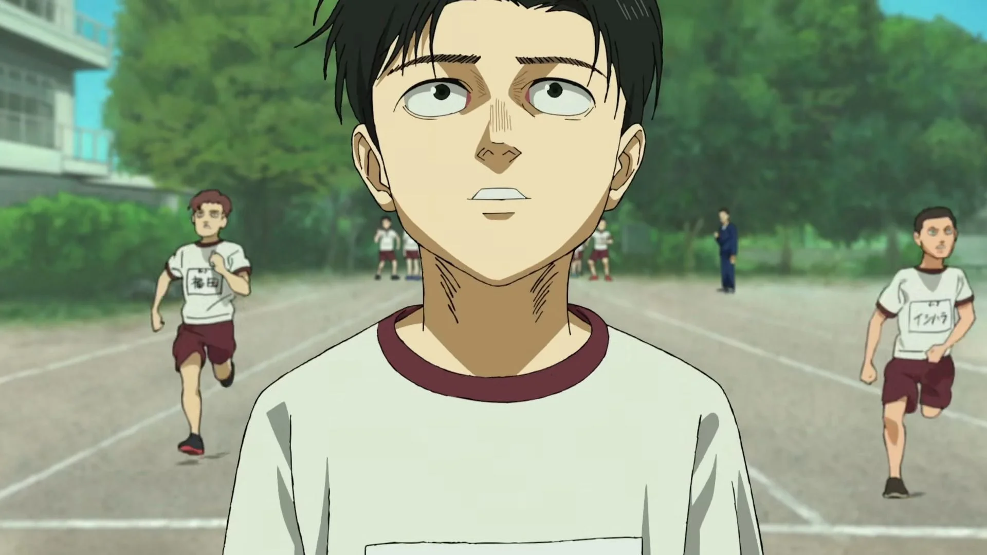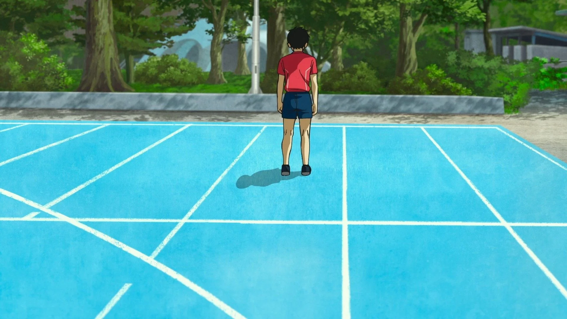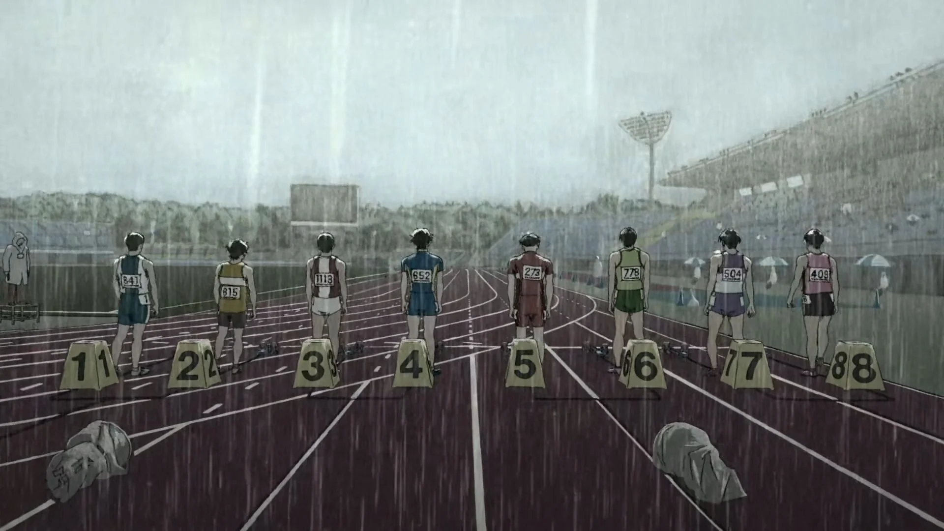 کمی قبل‌تر، هنگامی که توگاشی از کومیا می‌پرسد چرا یک کفشِ جدید نمی‌خرد، کومیا این‌طور جواب می‌دهد که از قضا خانواده‌اش هم می‌خواهند برای او بخرند اما اوست که اصرارِ آن‌ها را نفی می‌کند و می‌خواهد در این کفش‌های پاره‌، مدال را به دست آورد. مدتی بعد که می‌بینیم کومیا به دلیلِ شرایطِ خانوادگی نقلِ مکان کرده، می‌فهمیم که توجیهِ گذشته‌‌اش آن‌قدرها هم راست نبوده و در نهایت هم کفشِ خود را با چسبِ محکم‌تری سرهم می‌کند. این وسط، Hyakuemu در لحظاتِ آرامِ خود، حسابی از بسترِ صوتیِ معرکه‌اش سود می‌برد تا نه‌تنها جای خالیِ سکوت را پُر، بلکه اُفت‌ و خیزِ رقابت را به تصویر پمپاژ کند؛ مثلِ غرشِ موتورِ ماشین وقتی کومیا حرف از مسابقه با توگاشی می‌زند، پژواکِ هواپیما وقتی نیگامی نفسش را پس از سال‌ها خانه‌نشینی تازه می‌کند یا وقتی ضربِ قطارِ روی ریل، نقشِ شلیکِ آغازِ مسابقه را بازی می‌کند.