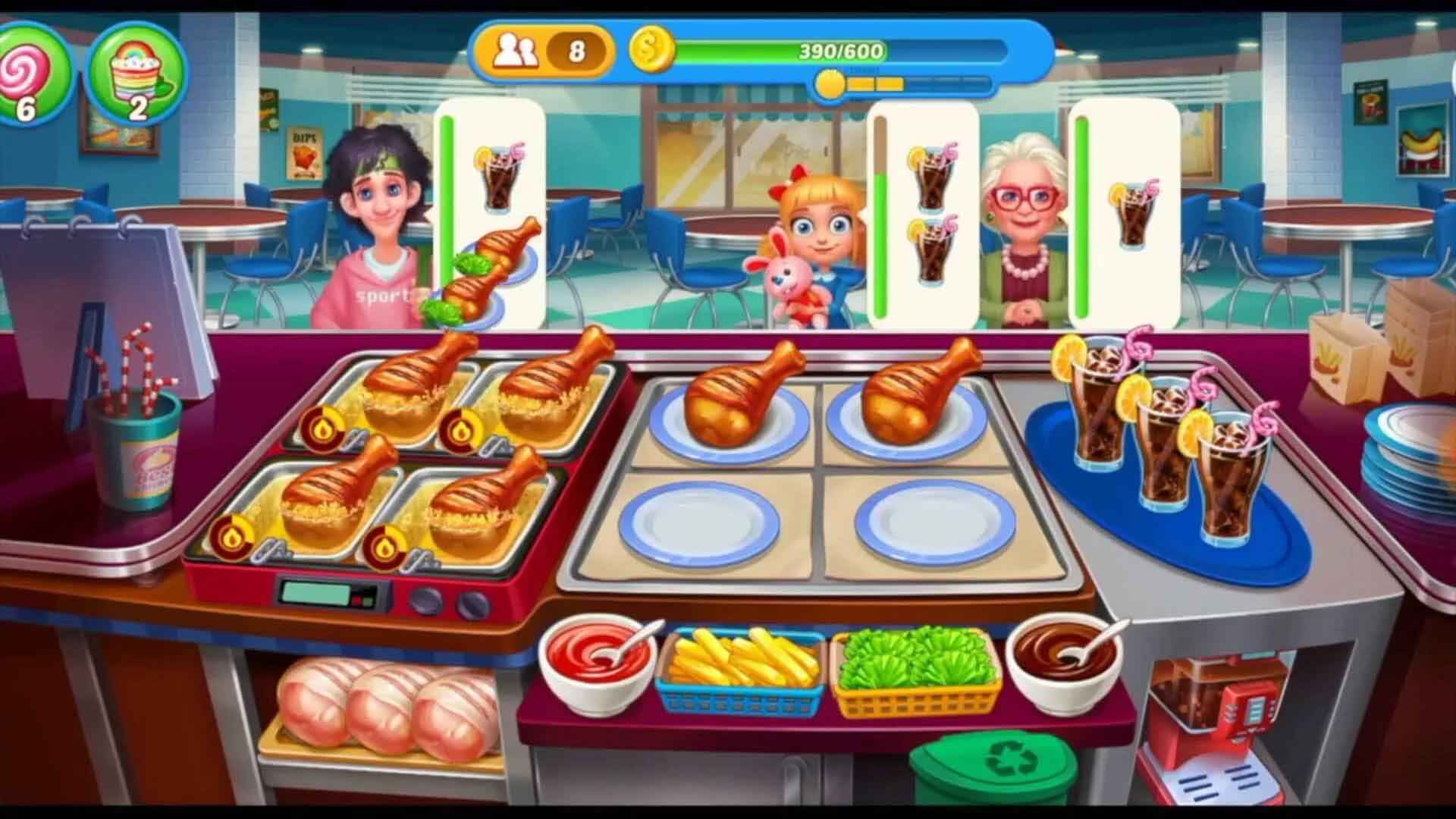 در بازی Crazy Chef: Cooking Restaurant باید در نقش یک آشپز در زمان کوتاهی سفارش مشتریها را فراهم کنید که باتوجهبه فضای شاد و پررنگ و لعابی که دارد میتواند گزینه مناسبی برای کودکان باشد. در طول بازی هرمشتری یک سفارش غذا خاصی دارد و بازیکن باید باتوجهبه درخواست مشتری غذای مدنظر را آماده کند و البته که رضایت مشتری را نیز در نظر بگیرد. با پیشروی در طول بازی و کسب درآمد میتوانید آیتمهای بیشتری را خریداری کنید که در مقابل سود بیشتری را کسب میکنید و البته که چالشهای بیشتری را نیز به سراغتان میآید. بازی Crazy Chef: Cooking Restaurant ساخته استودیوی Casual Joy Games شاید در ظاهر یک اثر دشوار برای کودکان باشد ولی از آنجایی که یک بازی سرعتی به حساب میآید میتواند این ویژگی کودکان را تا حدی تقویت کند.