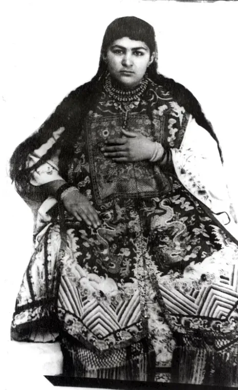 عکس یکی از زیباترین زنان ناصرالدین شاه با لباس چینی را ببینید.