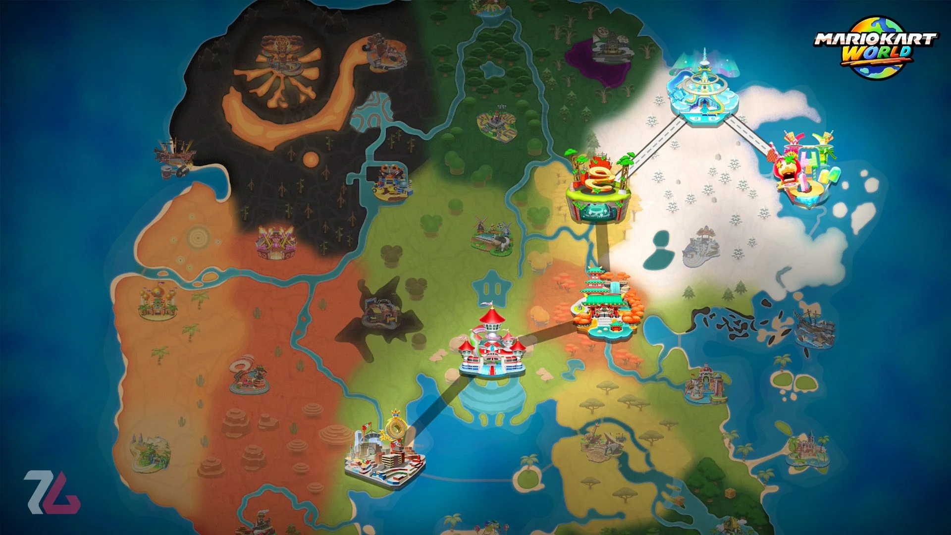 در نگاه اول ممکن است فکر کنید «ماریو کارت ورلد» شبیه همان نسخههای قبلی است. اما با جرئت میتوانم بگویم که World متفاوتترین نسخهی «ماریو کارت» نینتندو تاکنون است. این بازی به نوعی بزرگترین و پرمحتواترین «ماریو کارت» ساختهشده تاکنون محسوب میشود. تعداد بازیکنان از ۱۲ به ۲۴ نفر افزایش یافته است، بخشهای جدیدی مانند Knockout Tour، Free Roam و کلی مکانیزم تازه هم به بازی اضافه شدهاند.
