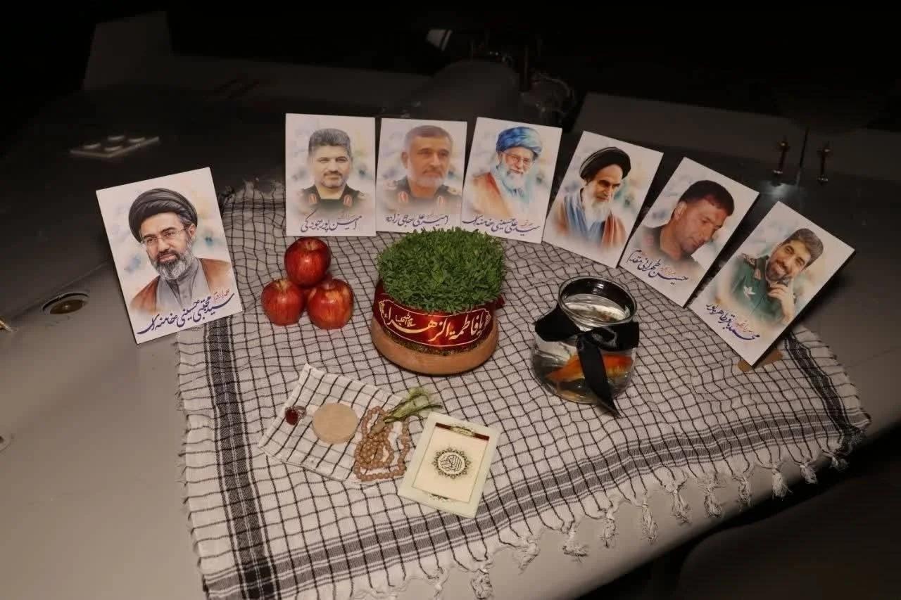 در ادامه سفره هفت‌سین نیروهای هوافضای سپاه را با عکس شهیدان بر روی بال پهپاد انتحاری شاهد مشاهده می کنید.
