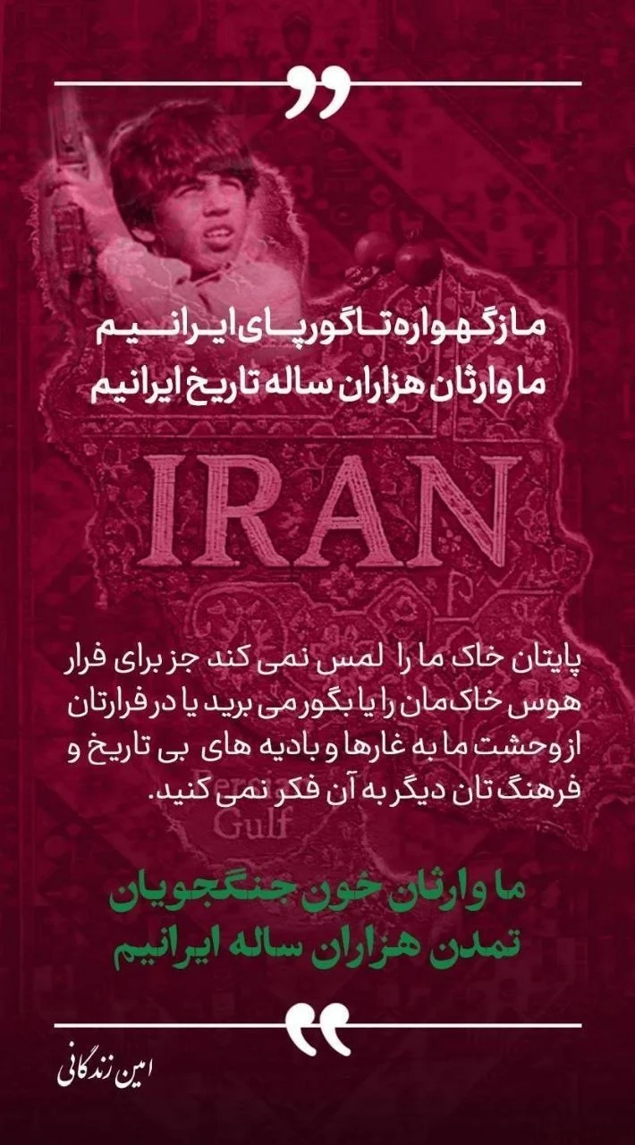 ما وارثان خون جنگجویان تمدن هزاران ساله ایرانیم./امین زندگانی