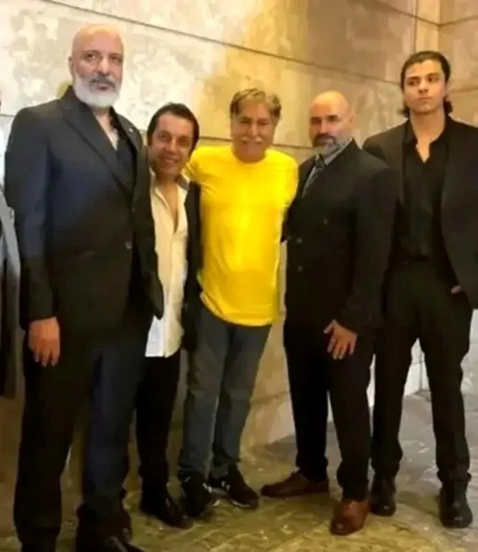 تصویری از حضور امیر جعفری و پسرش آیین جعفری (با لباس یکدست سیاه) را در کنار برخی دیگر از هنرمندان در مراسم عروسی دریا آقاخانی دختر سعید آقاخانی در تابستان سال 1403 ملاحظه میکنید.