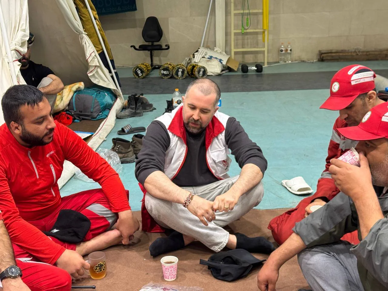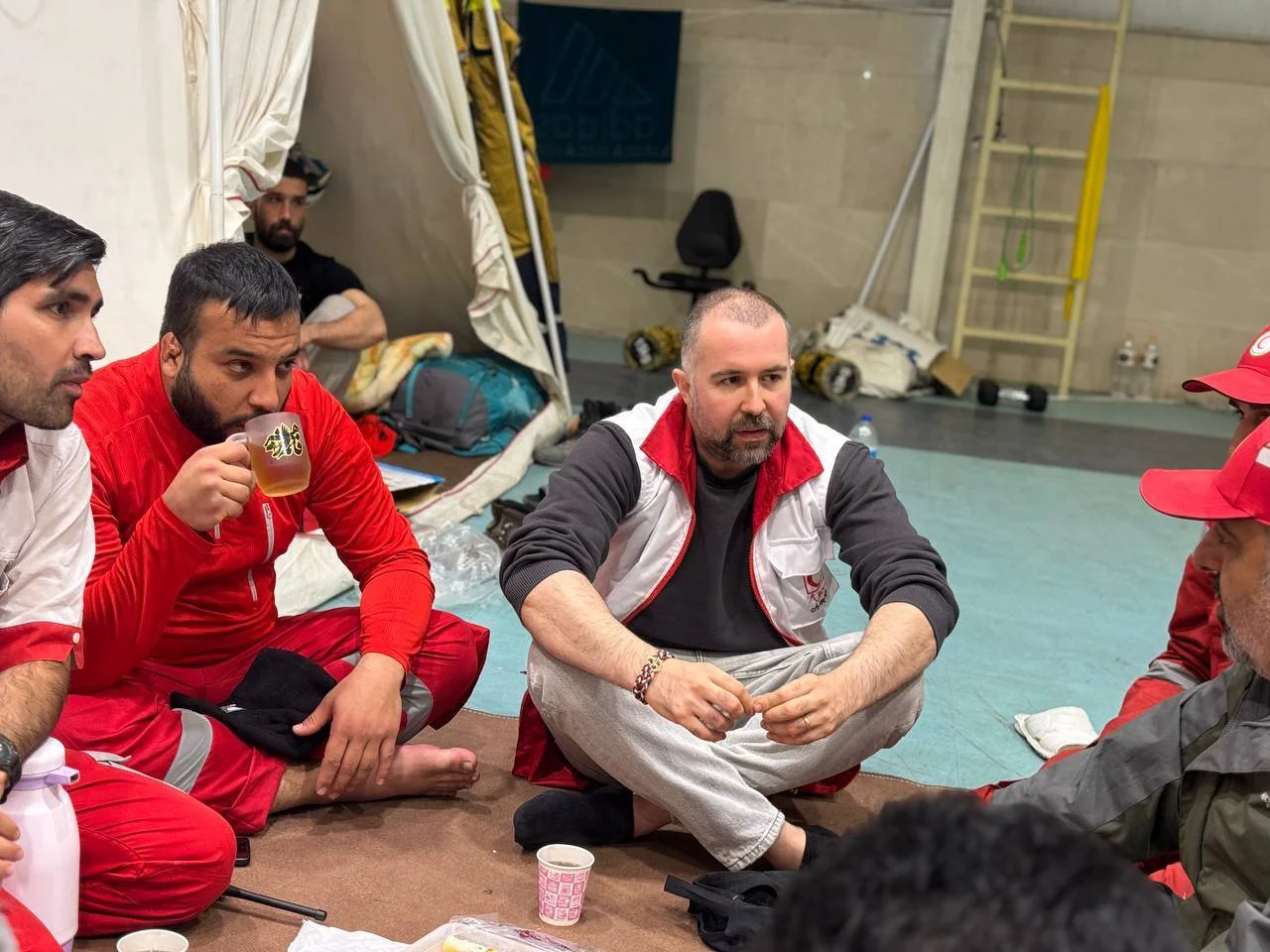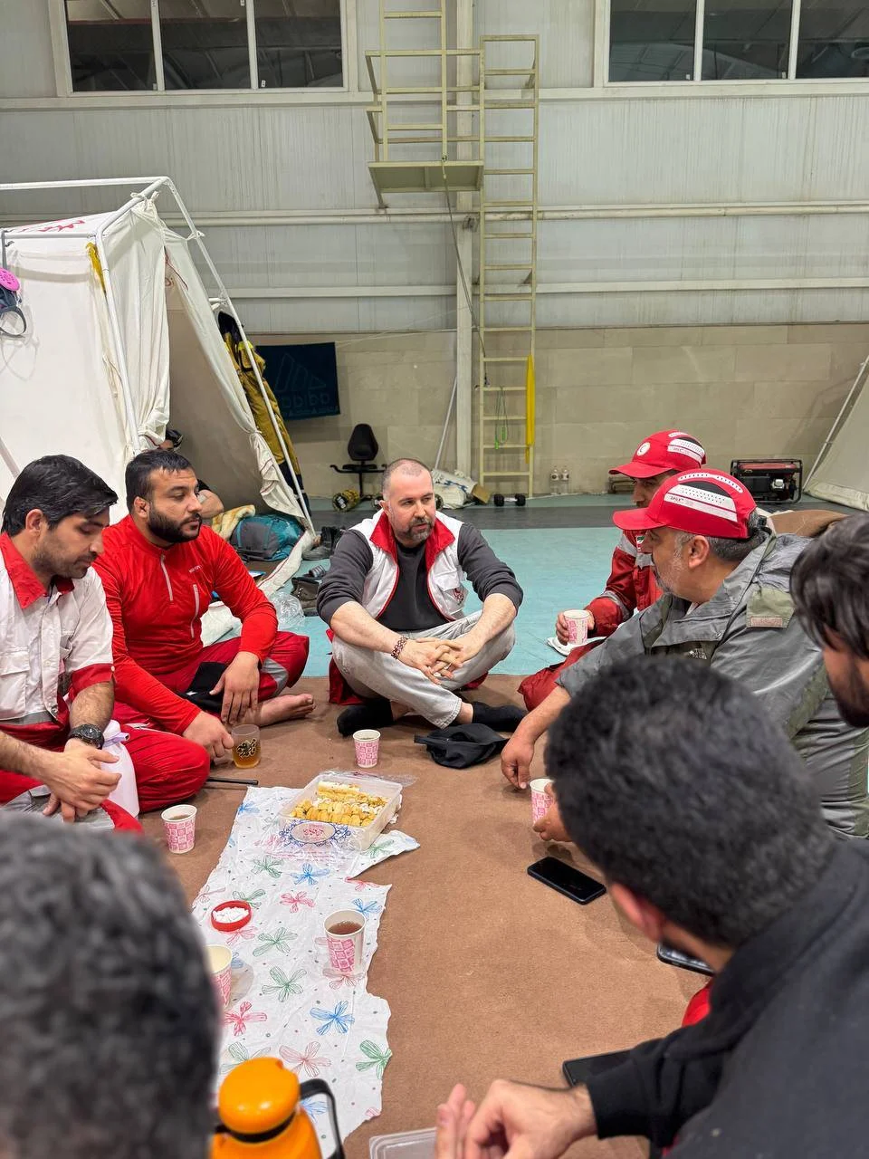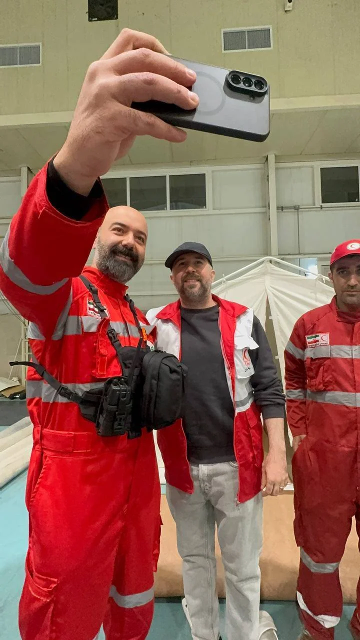 سهراب ام جی رپر معروف در کنار امدادگران هلال احمر