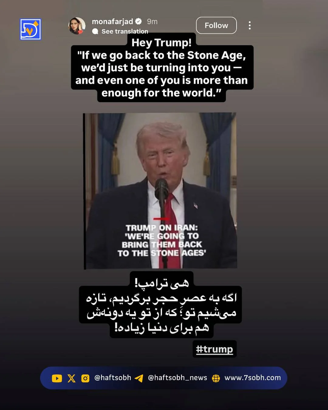 هی ترامپ! اگر به عصر حجر برگردیم، تازه میشیم تو؛ که از تو یه دونهاش هم برای دنیا زیاده!