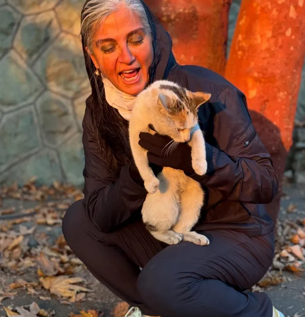 عکس‌ دیروز | تیپ پاییزی رویا جاویدنیا در پارک