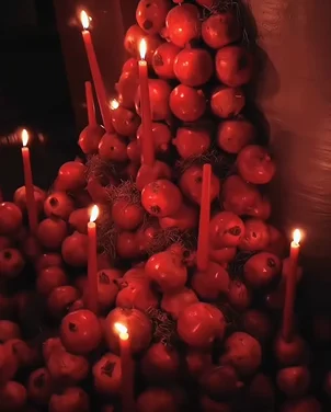 تصاویر طراحی جذاب و متفاوت کافه مینا مختاری ، همسر بهرام رادان، با حال و هوای یلدا در فضای مجازی دست به دست می‌شود. این طراحی‌ها با استفاده از انارهای خوشرنگ و با طراوت، جلوه‌ای خاص به محیط کافه بخشیده است.