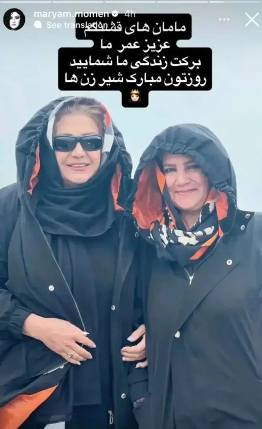 مریم مومن، بازیگر شناخته‌شده ایرانی، با انتشار عکسی در اینستاگرام خود، روز مادر را به مادرش و مادر همسرش سهیل قاصدی، مجری و بازیگر تلویزیون، تبریک گفته بود. تصویری که منتشر کرده بود را مشاهده کنید.
